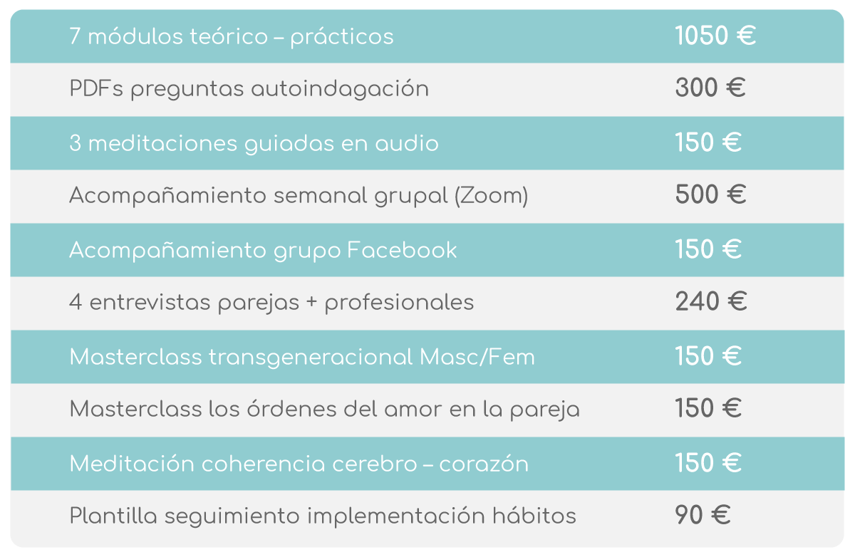 Recomiendo 100% este programa a quienes estén en proceso de cuestionar su experiencia de ser y tener pareja. Comprender nuestras raíces nos da la posibilidad de liberar lo que nos ata para poder vivir una vida de pareja plena!